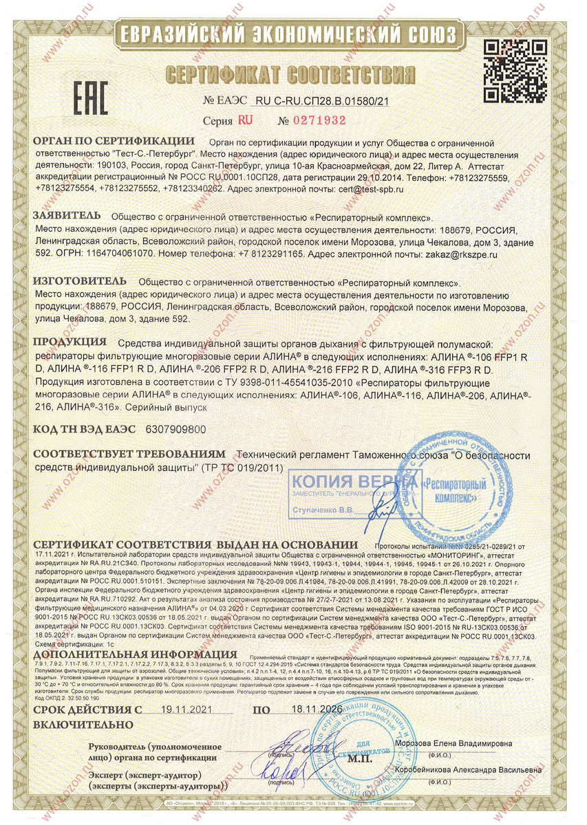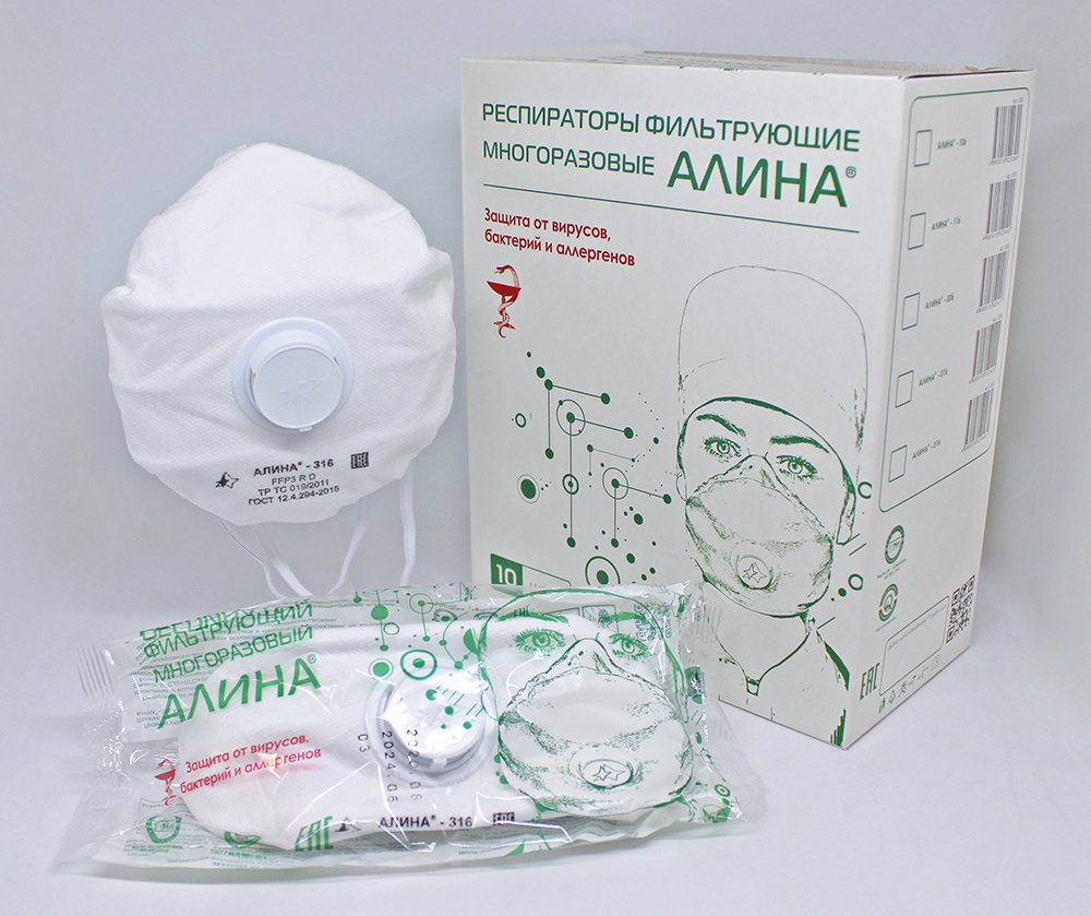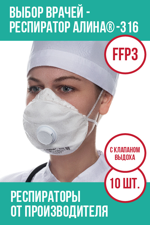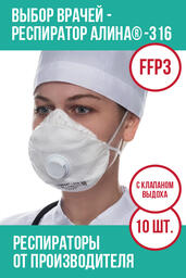 Респиратор профессиональный Алина® Респиратор медицинский Алина-316 FFP3 с клапаном, FFP3, размер 0, 10 шт.