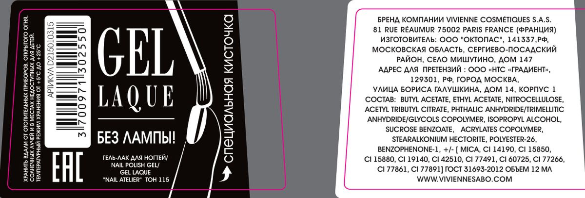 Vivienne Sabo Гель-лак для ногтей Nail Atelier, тон 115, 12 мл