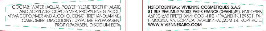 - Состав: Water (Aqua), Polyethylene Terephthalate and Acrylates Copolymer, Propylene Glycol, VP/VA Copolymer and Alcohol Denat., Triethanolamine, Carbomer, Diazolidinyl Urea, Methylparaben, Propylparaben, Disodium EDTA.