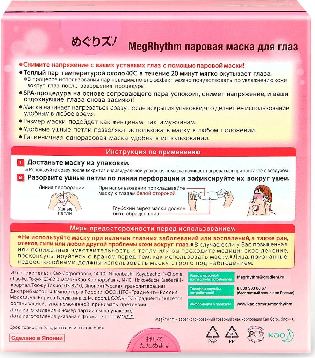 Способ применения:Достаньте маску для глаз из упаковки. Разорвите ушные петли вдоль линии перфорации, приложите маску к глазам и зафиксируйте с помощью ушных петель. Маска предназначена для однократного применения.
