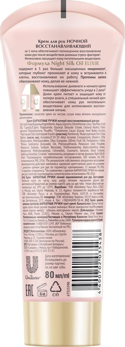 Крем для рук Бархатные Ручки "Восстанавливающий", ночной, 80 мл