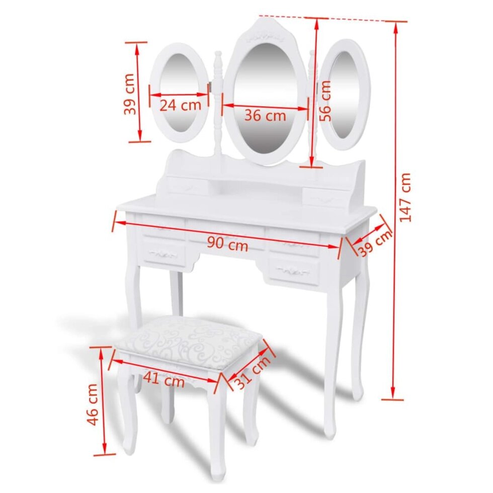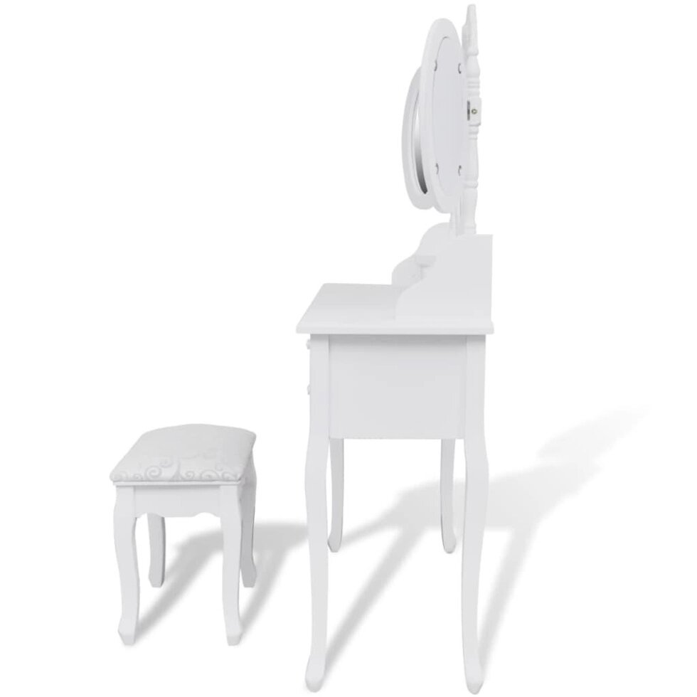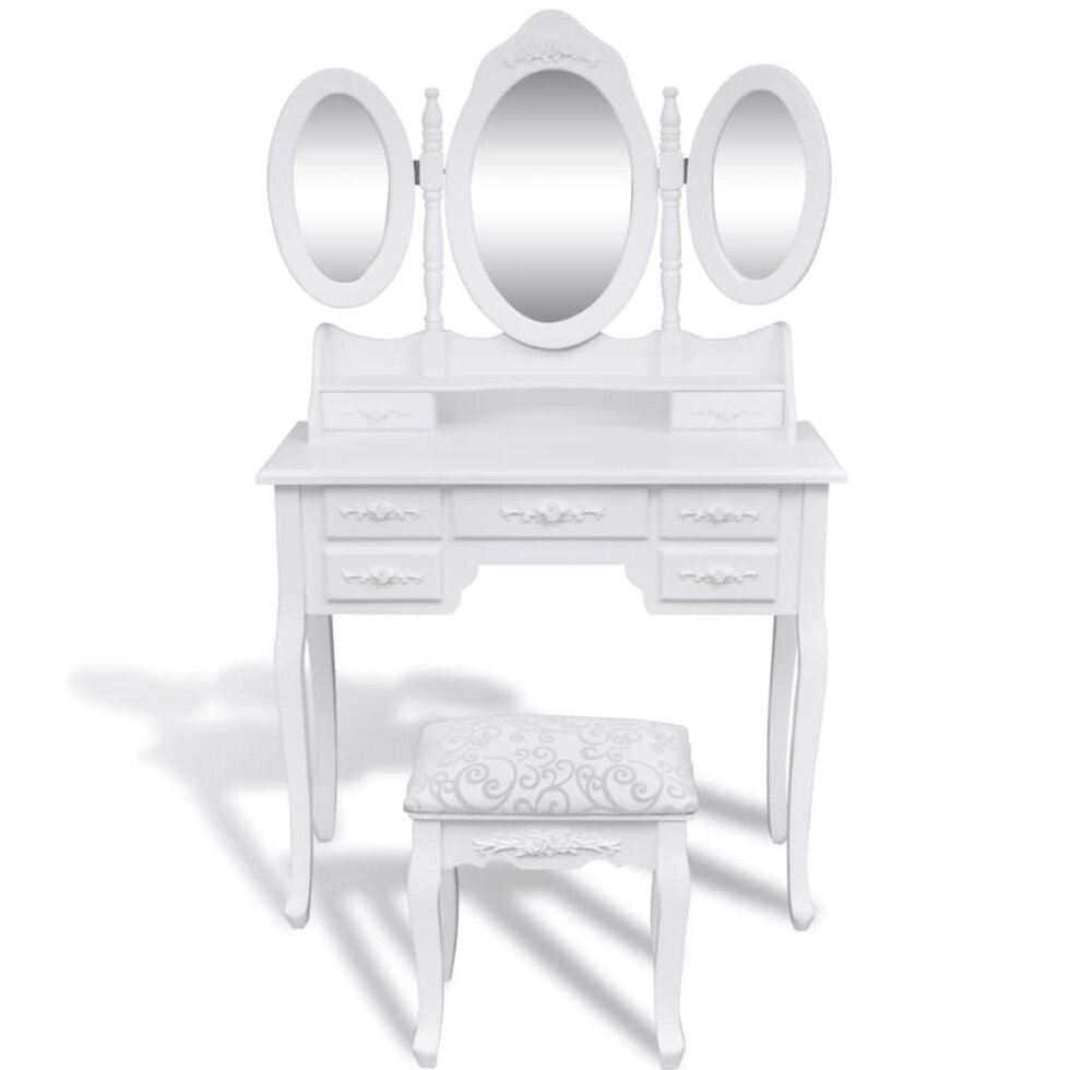 Туалетный столик с табуретом и 3 зеркала белый
