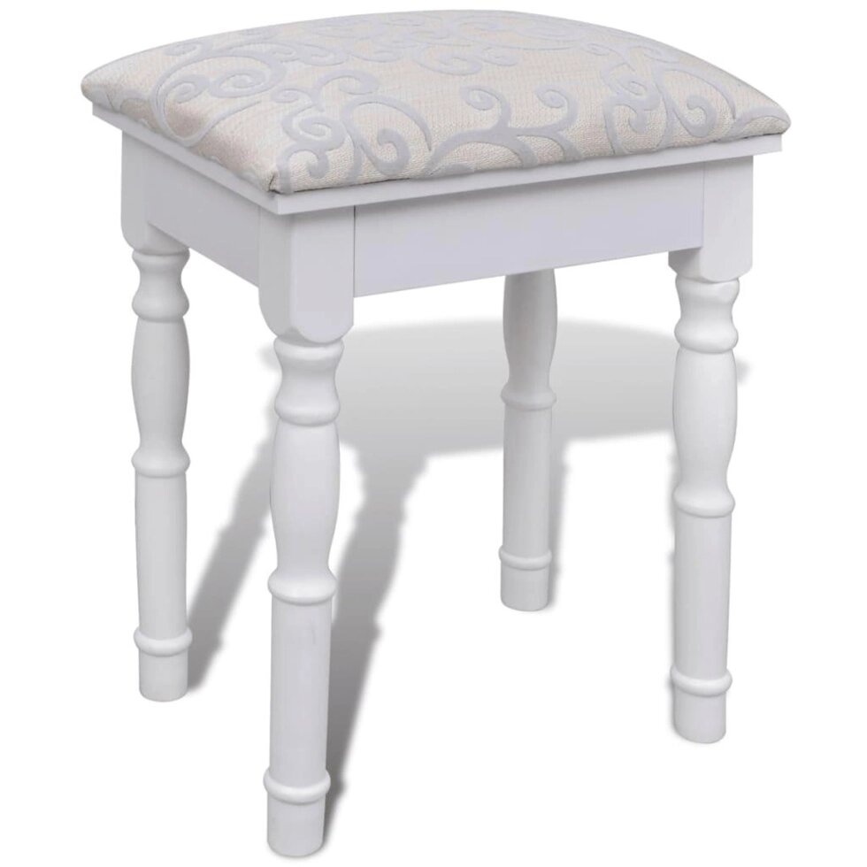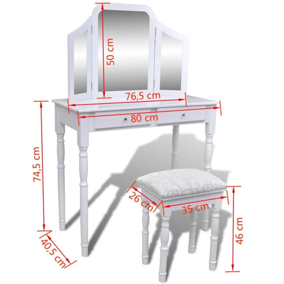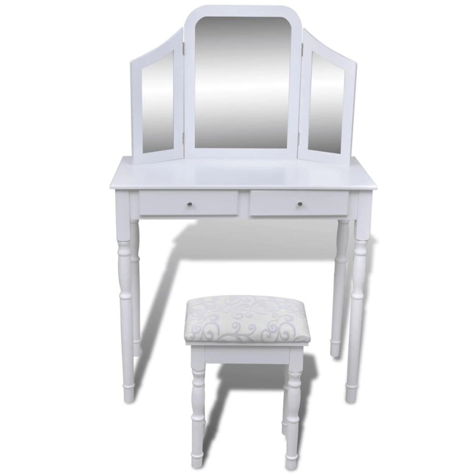 Туалетный столик с 2 ящиками, зеркало 3 в 1 и табурет белый