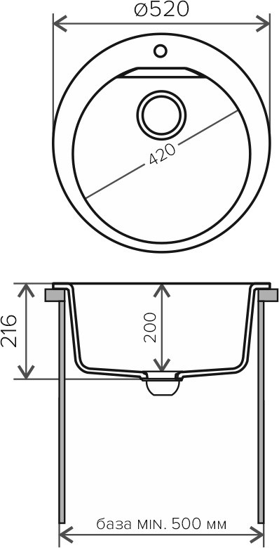 Кухонные мойки Кухонная мойка Polygran Atol 520 520x4520
