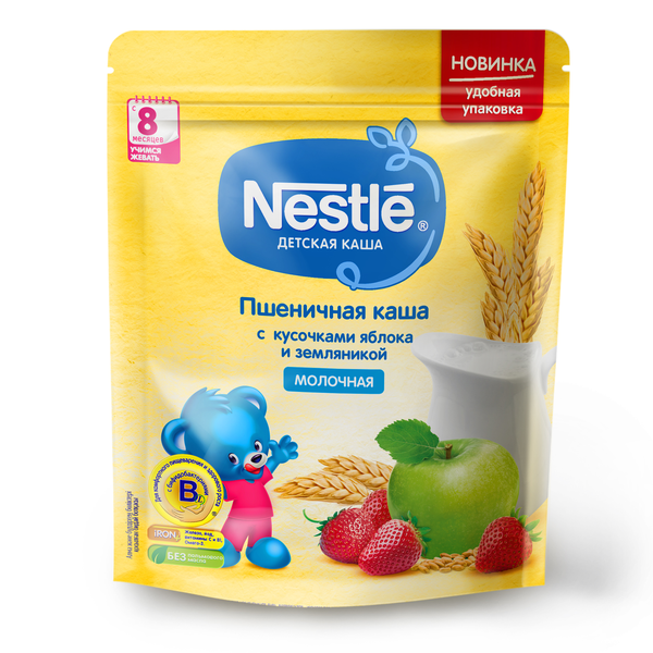 Каша Nestle® Пшеничная с кусочками яблока и земляникой c 8 мес.