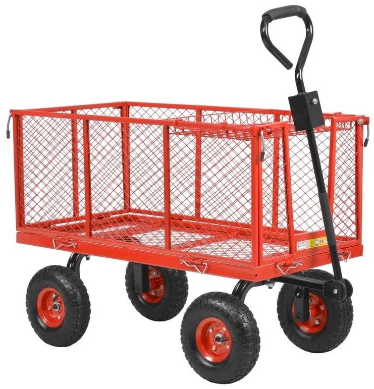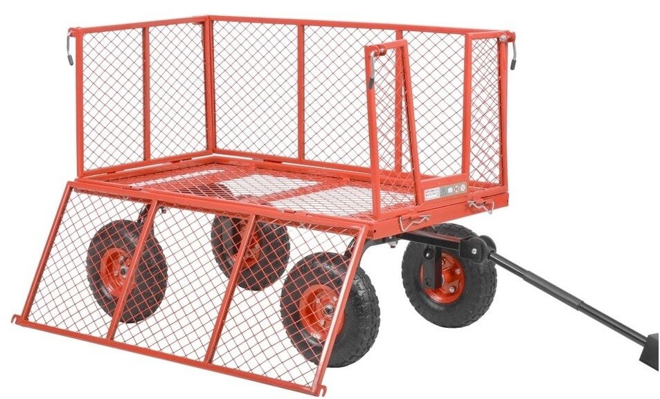 максимальная грузоподъемность составляет 300 кг , заполнять тележку можно не только скошенной травой и сухой листвой, но и строительными материалами, дровами, овощами, зерном и т.д.