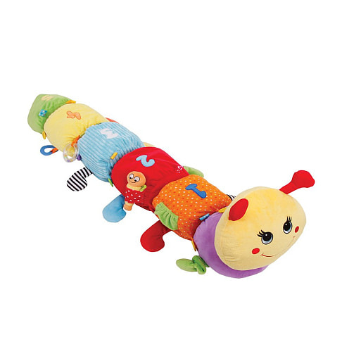Оригинальная развивающая игрушка Гусеница Мари - мягкая и приятная на ощупь, состоит из небольших сегментов-подушечек, которые можно отсоединять и использовать отдельно. Каждый сегмент - разного цвета, содержит один из развивающих элементов - прорезыватель, шуршалку, погремушку, пищалку, вибрацию. Также игрушка может использоваться в качестве удобной подушечки во время кормления.