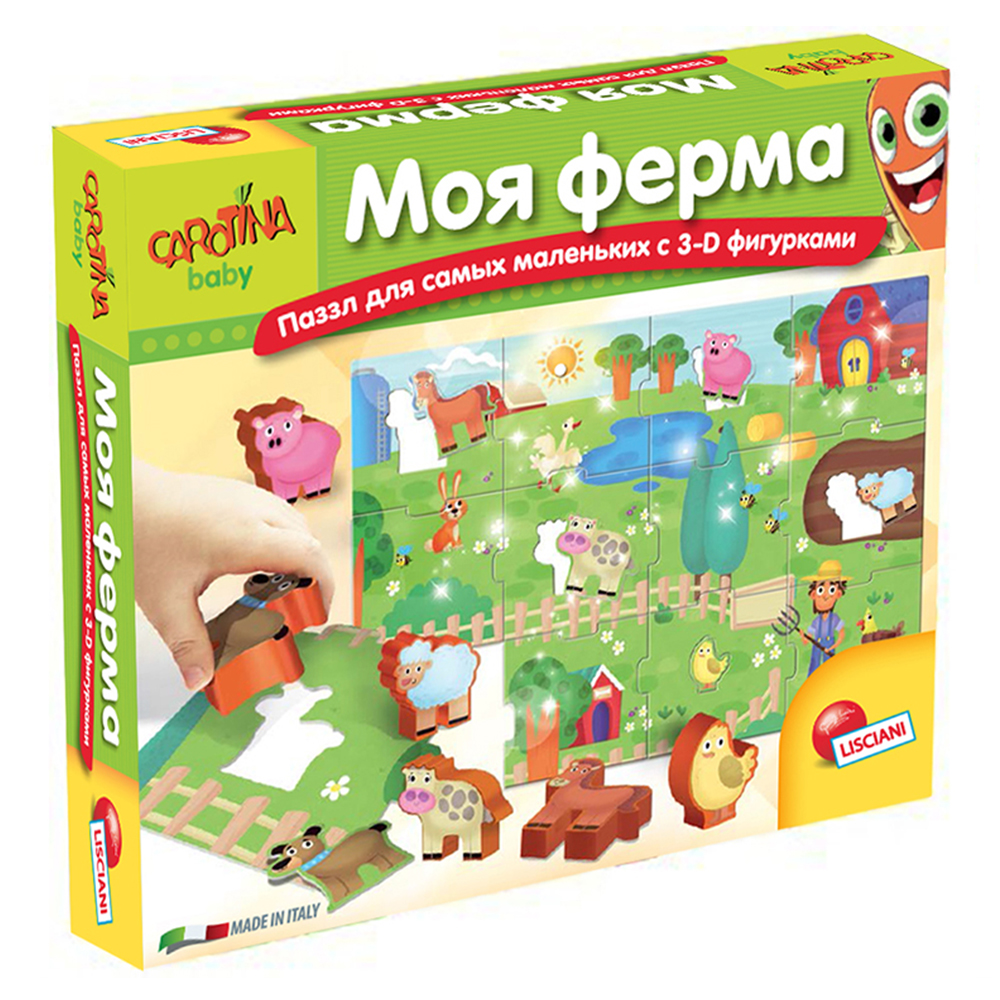 Пазл R63512 Carotina baby Моя ферма для самых маленьких с 3-D фигурками LISCIANI