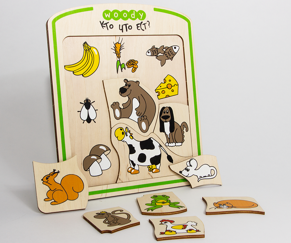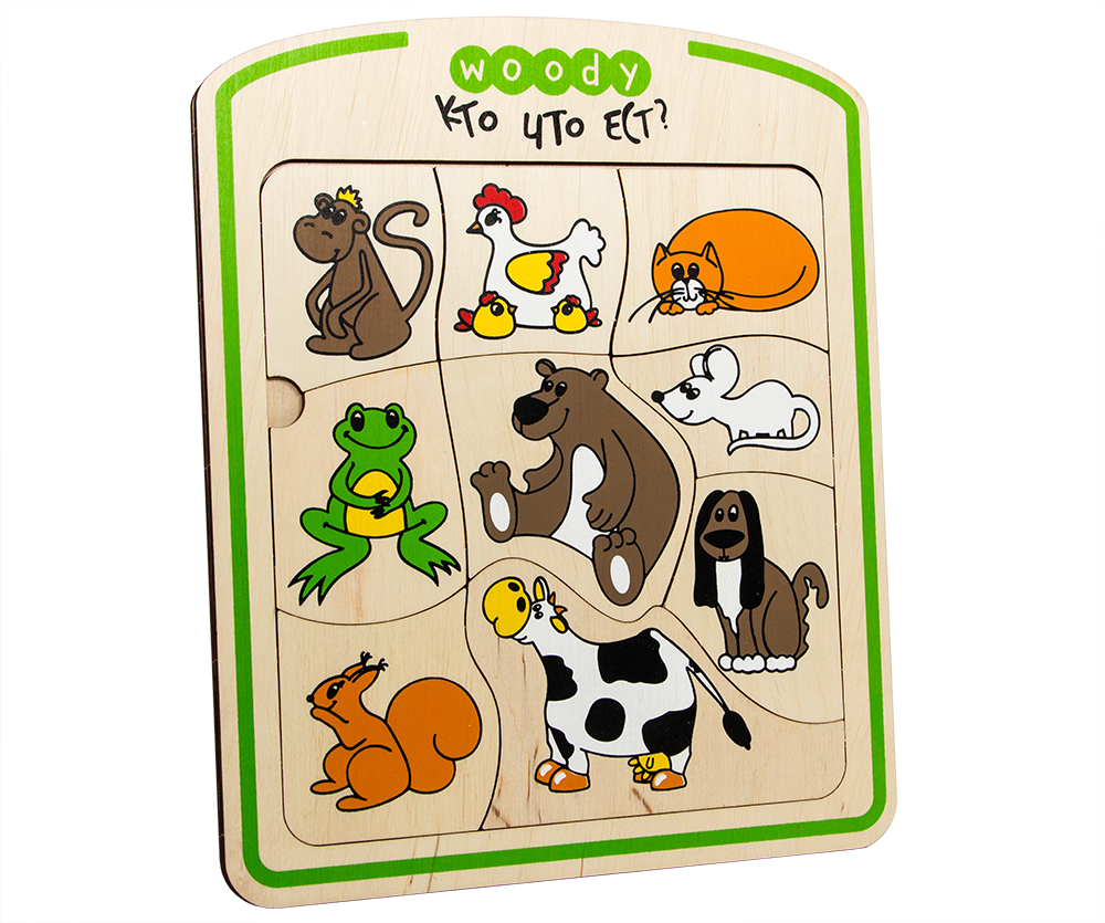 Пазл 01409 рамка-вкладыш Кто что ест? Woody