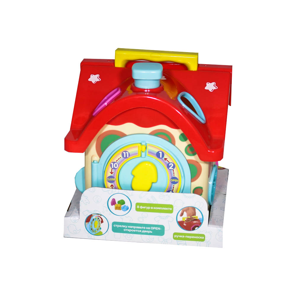 Сортер в виде домика - это развивающая увлекательная игрушка. В крыше домика - 8 разных отверстий для 8 фигурок, извлечь которые можно через специальную дверцу. Поверните стрелку к слову Open, чтобы дверь открылась. Сама дверь выполнена в виде циферблата, так что ребенок сможет в игровой форме познакомиться с работой часов.