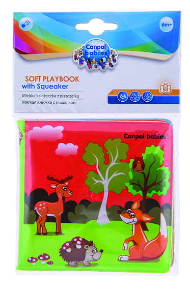 Мягкие, красочные картинки и звук пищалки, который появляется, когда вы нажимаете на книгу, привлекают внимание ребенка и побуждают его осваивать новые вещи. Игрушку легко содержать в