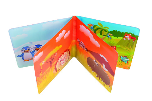 чистоте, ее также можно использовать во время купания. Мягкая книга для купания позволяет развивать зрительно-двигательную координацию. С такой книжечкой можно не только весело купаться, но и играть.