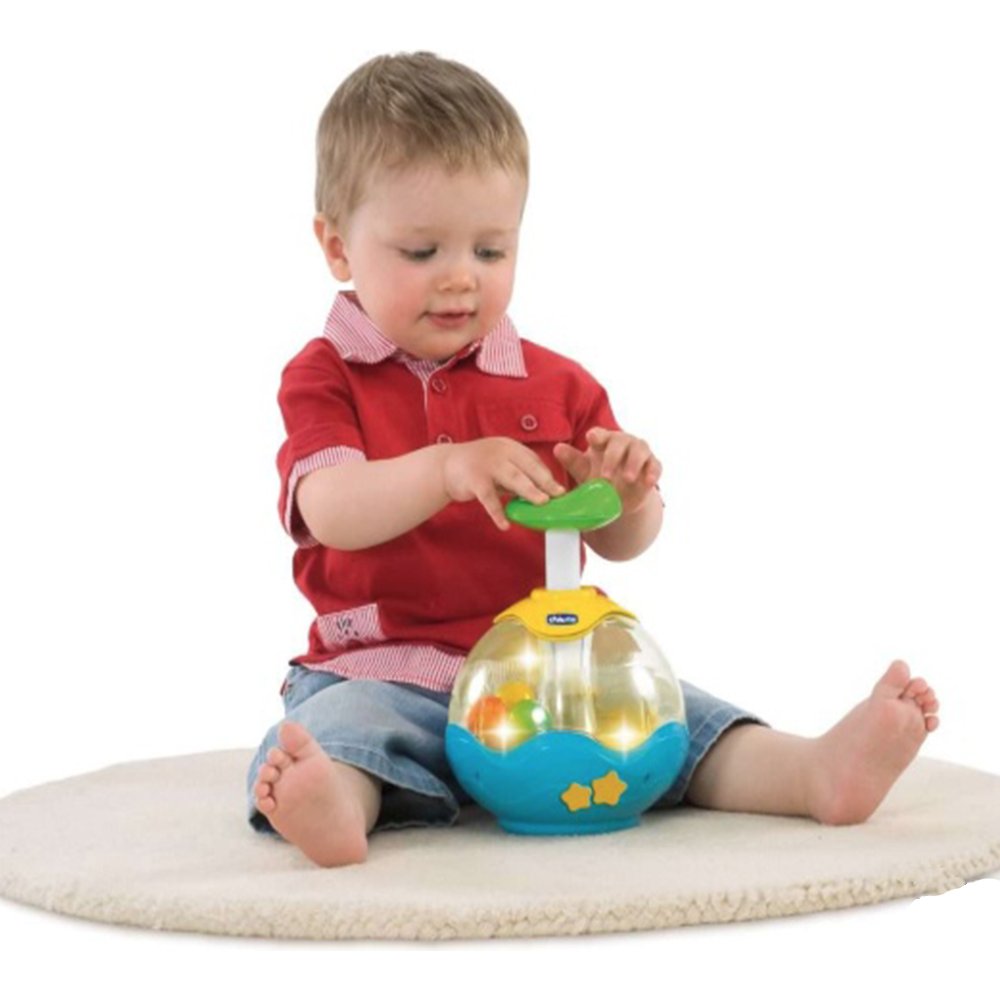 Юла Aquarium способствуют развитию мелкой моторики, слуховых навыков и причинно-следственной связи. Нажмите на ручку юлы, и разноцветные рыбки начнут кружиться в аквариуме.