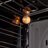 Дверцята і панель управління духовки ELEYUS STELLA 6006 BL CL виготовлені з білого загартованого скла - привабливого зовні і легкого у догляді довговічного матеріалу. Духова шафа обладнаний надійними, продумано розташованими механічними ручками управління + сенсорними кнопками, а також дисплеєм. Для приготування доступні 4 рівня рельєфних направляючих.
