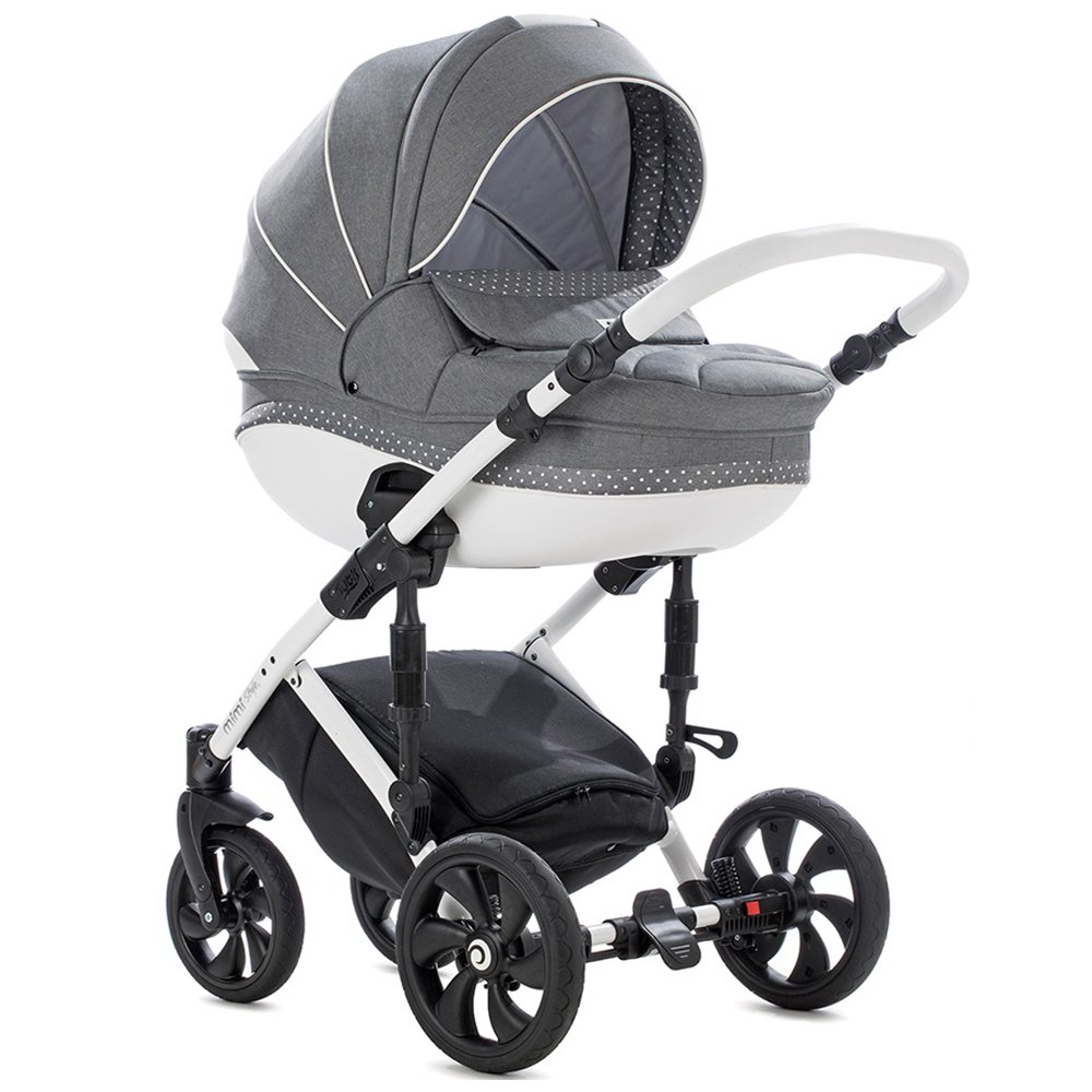 Коляска 782331 TUTIS 2 в1 MIMI STYLE серый лен, белый горох, кожа
