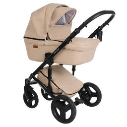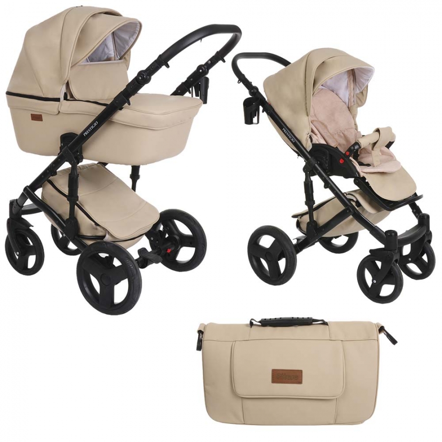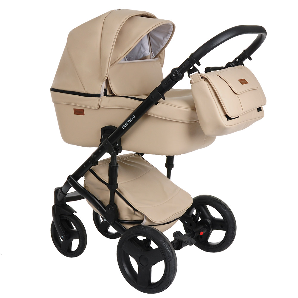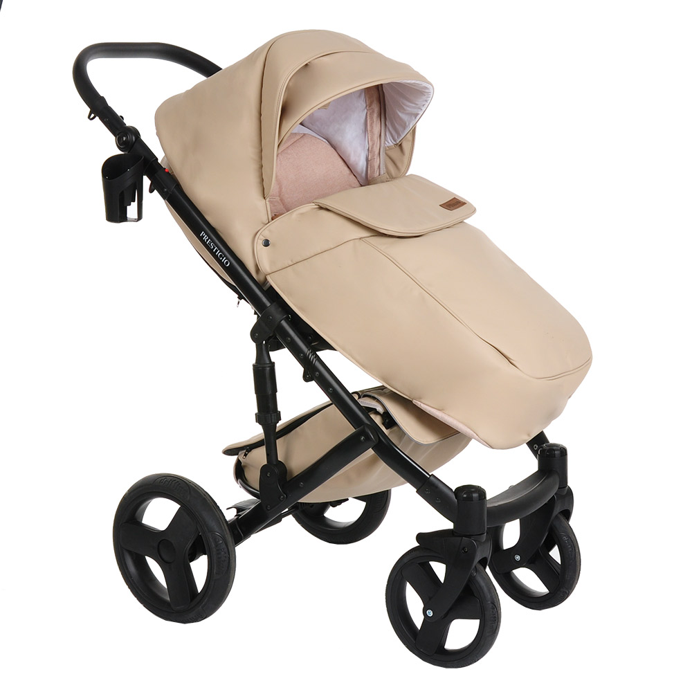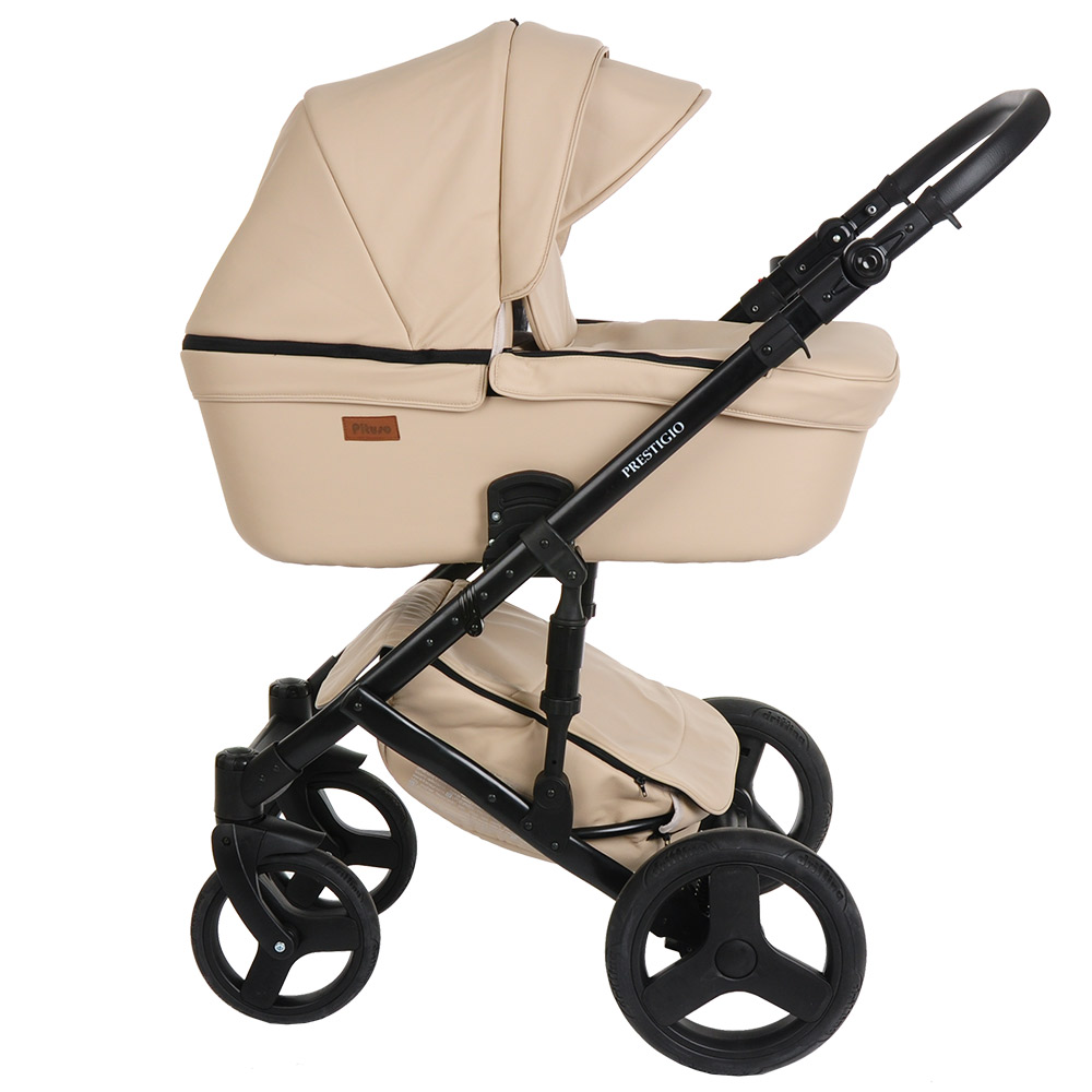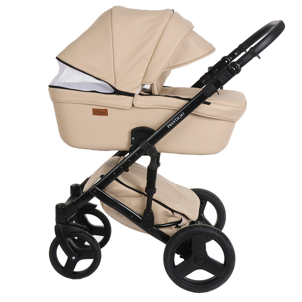 Коляска 2 в1 Prestigio кожа бежевый, рама черная PITUSO 710/86
