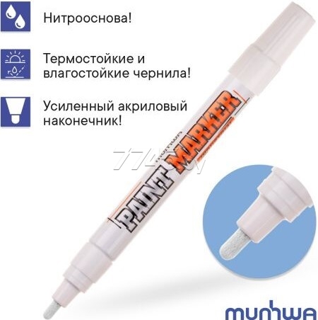 Маркер перманентный на основе жидкой краски MUNHWA Industrial белый