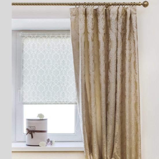 Рулонные шторы с рисунком серии «Дамаск» хорошо смотрятся в классическом или современном интерьере и крепятся на пластиковые окна без сверления, рисунки рулонных штор выразительно выделяются на фоне полотна и смотрятся утонченно, при этом не броско. Вешать полупрозрачные рулонные шторы с рисунками можно с плотными портьерами или как самостоятельный элемент. Рулонные шторы можно установить внутри оконной рамы, на стене или потолке. Представляют собой плоские полотна, которые сворачиваются в рулон при подъеме вверх, благодаря имеющимся механизму и фиксатору.