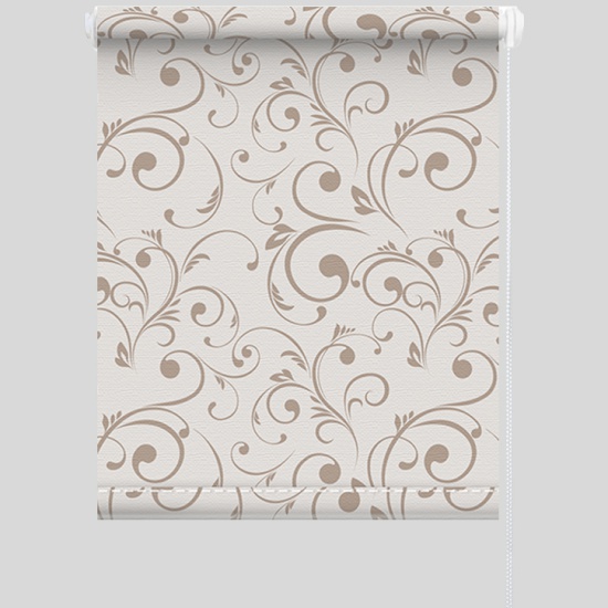 Рулонные шторы «Вензель» хорошо смотрятся в любом интерьере. Орнамент выделяется на фоне полотна и выглядит утонченно и не броско.Светопроницаемость 20%.