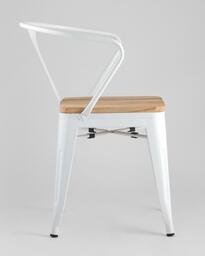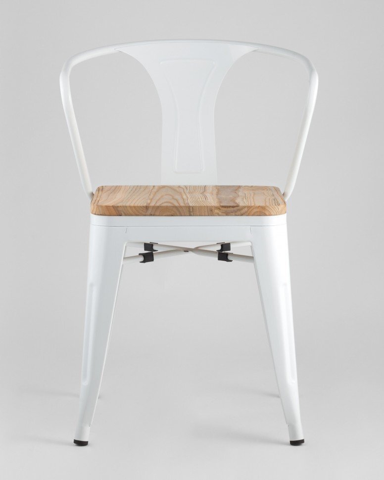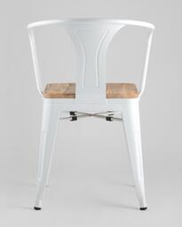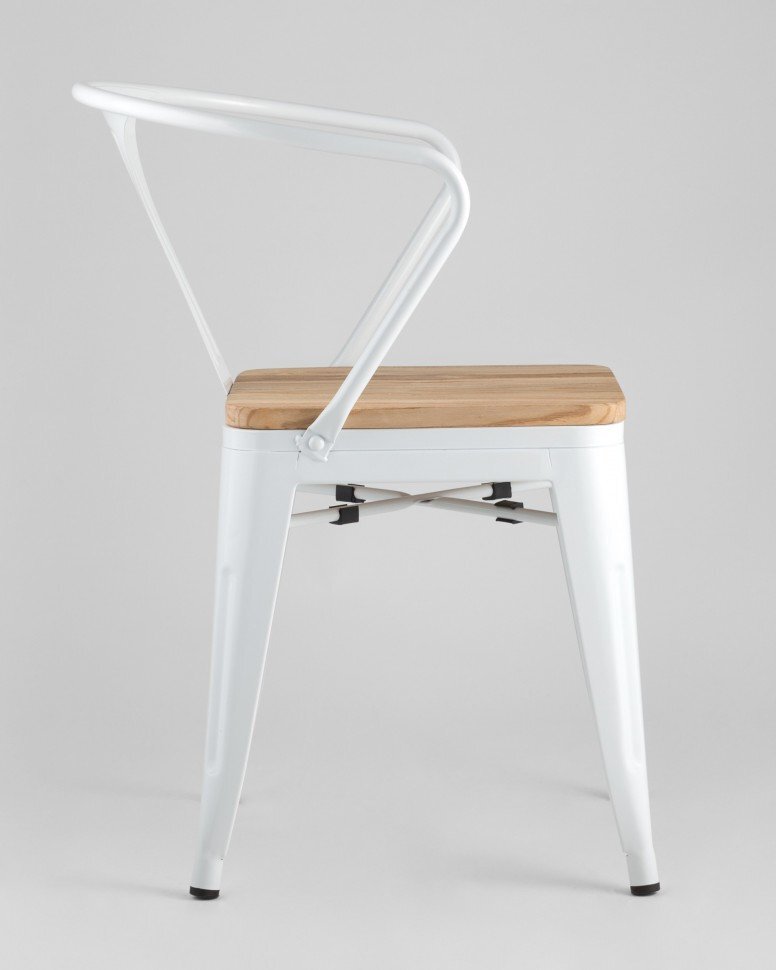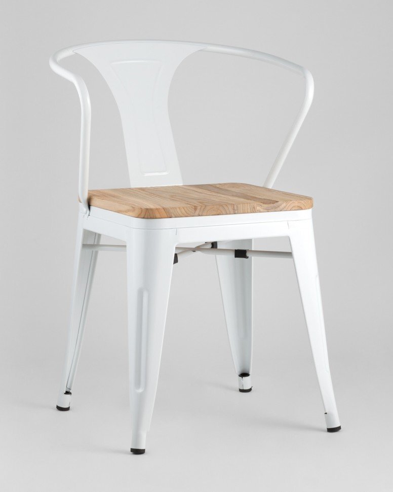Стул Stool Group Tolix с подлокотниками белый матовый + светлое дерево, металлическое основание, оцинкованная мет