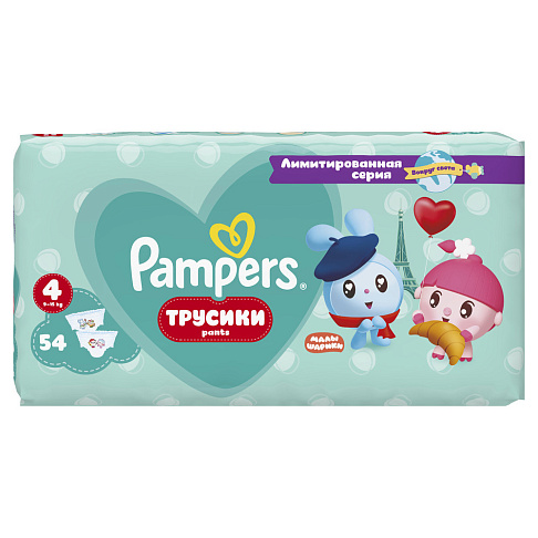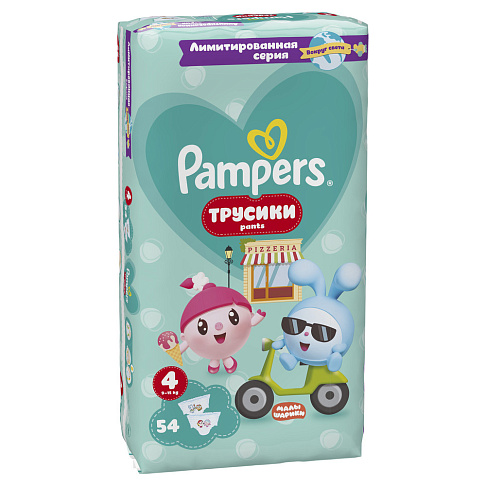 Трусики-подгузники Jumbo 4 9-15 кг Малышарики Pampers Active Baby 54 шт
