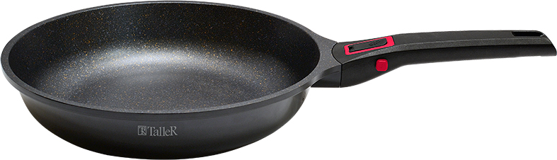 Стандартная, 22 см, покрытие фторопласт, материал корпуса алюминий, ручка: бакелит.