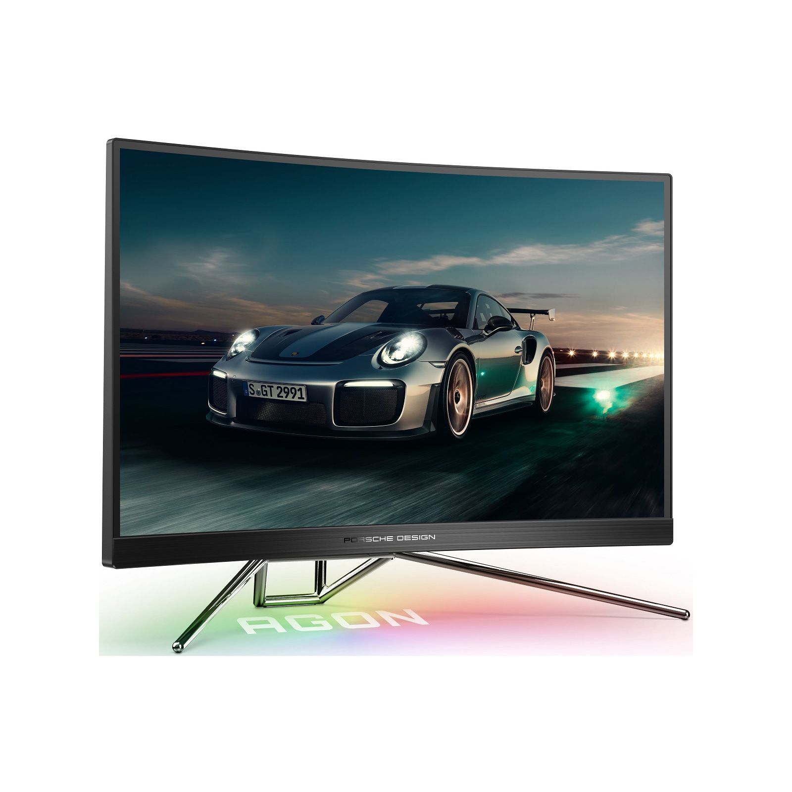 Дизайн виробу сучасний, стильний та геймерський, виконаний в сріблястому з чорним кольорі. Підставка також має сучасний вигляд та сріблясте забарвлення, що підсилює геймерський дизайн. Для зручності користування, висоту та кут нахилу монітора можна легко змінювати. До того ж підставка монітора привертає увагу до його задньої частини, тоді як передню частину виділяє підсвітка, яка змінює колір залежно від ситуації у грі та проектує на поверхню столу логотип Porsche Design або AGON.
