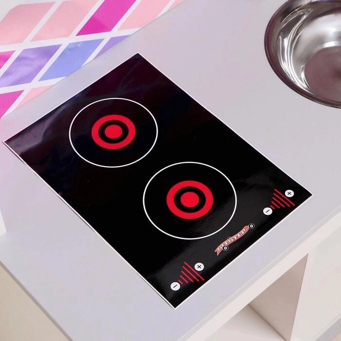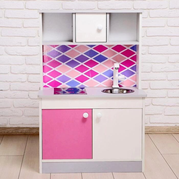 Набор игровой мебели «Детская кухня», цвет корпуса бело-серый, цвет фасада бело-малиновый, фартук ромб