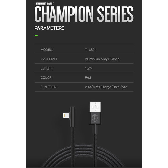 Кабель T-PHOX USB Cable to Lightning Gaming 3A 1m Black (T-L832 Black)