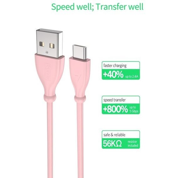 Кабель T-PHOX USB Cable to USB-C Kitty 1m Pink (T-C817 Pink)
