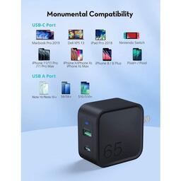 Зарядное устройство RavPower Wall Charger USB-C and USB GAN 65W White (RP-PC133WH)