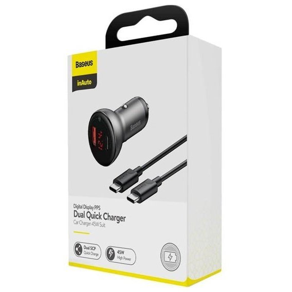 Зарядное устройство Baseus USB Car Charger Mini with Cable USB-C to USB-C 45W Black (TZCCBX-C0G)
