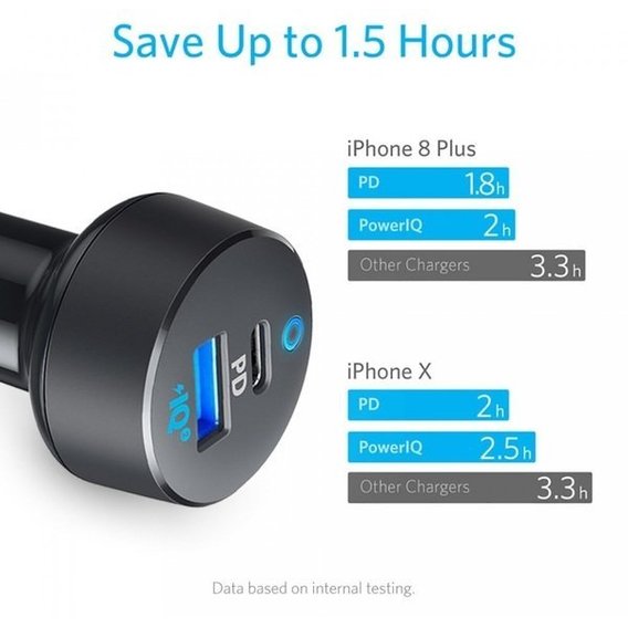 Зарядное устройство ANKER USB Car Charger PowerDrive Power Delivery USB 12W + USB-C 18W Black (A2721HF1/A2721GF1)