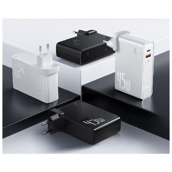 Зарядное устройство Baseus Wall Charger Power Station GaN 2xUSB-C 45W + Power Bank 1000mAh White (PPNLD-F02)