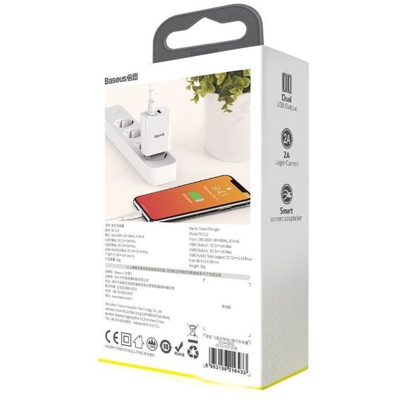 Зарядное устройство Baseus USB Wall Charger Speed Mini 2xUSB 2.1A 10.5W White (CCFS-R02)