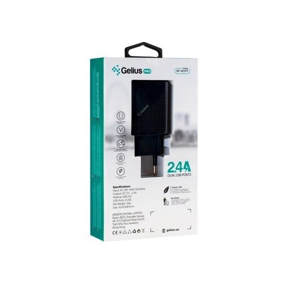 Зарядное устройство Gelius USB Wall Charger 2xUSB Pro Vogue 2.4A Black (GP-HC011)