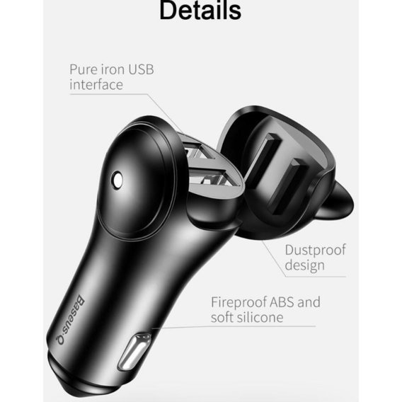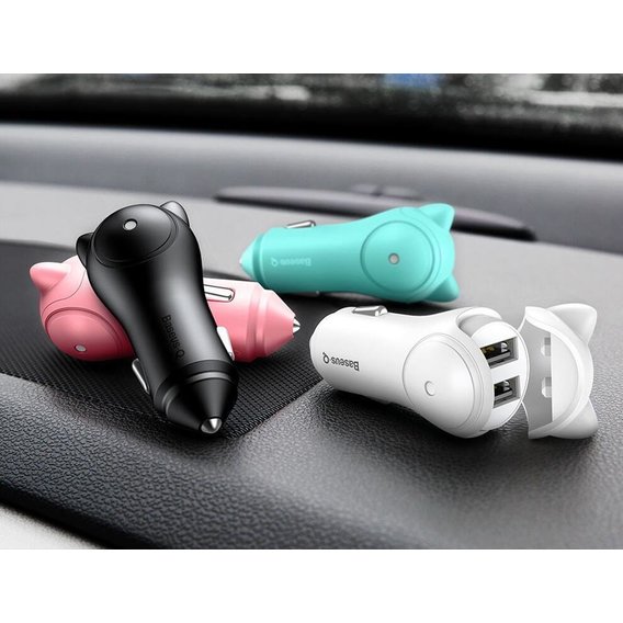 Зарядное устройство Baseus USB Car Charger Adorkable 2xUSB 3A White (CCALL-DM01)