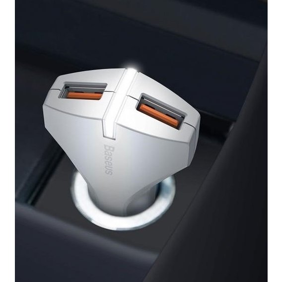 Зарядное устройство Baseus USB Car Charger Small Rocket QC3.0 2xUSB 3A White (CCALL-RK02)