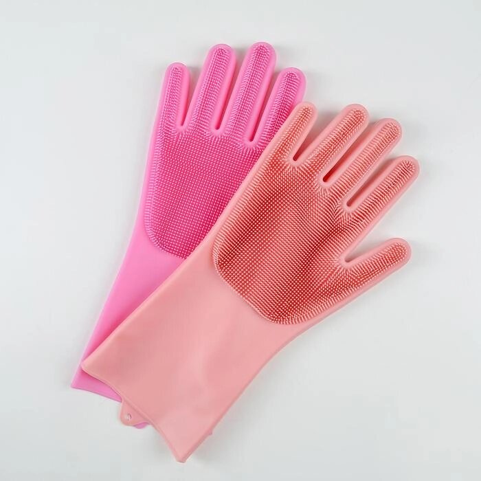 Перчатки хозяйственные силиконовые, для мытья посуды, 240 гр, цвет МИКС