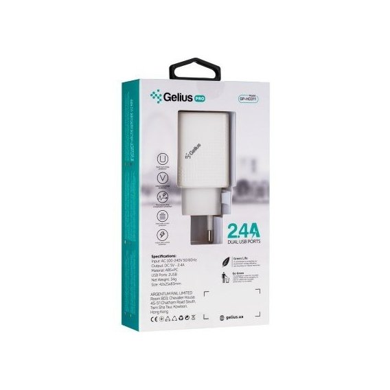 Зарядное устройство Gelius USB Wall Charger 2xUSB Pro Vogue 2.4A White (GP-HC011)
