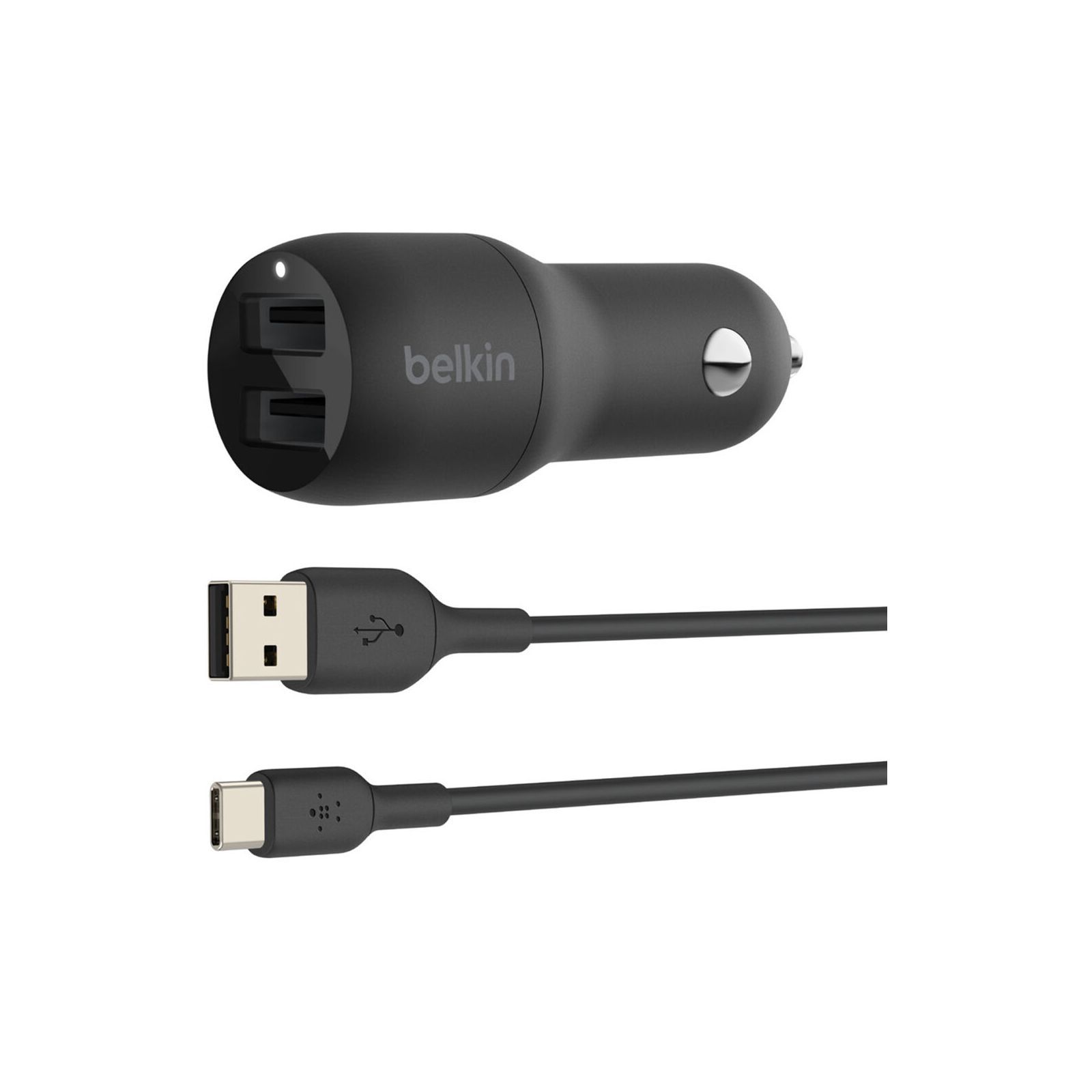 Зарядний пристрій Belkin Car Charger (24W) Dual USB-A, USB-A - USB-C, 1m, black (CCE001BT1MBK)