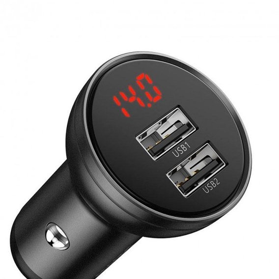 Зарядное устройство Baseus Car Charger USB Digital Display 4.8A 24W with USB-C Cable Black (TZCCBX-0G)