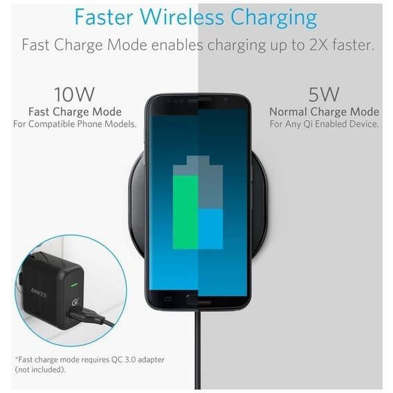 Зарядное устройство ANKER Wireless Fast Charger 10W Black (A2513H12)