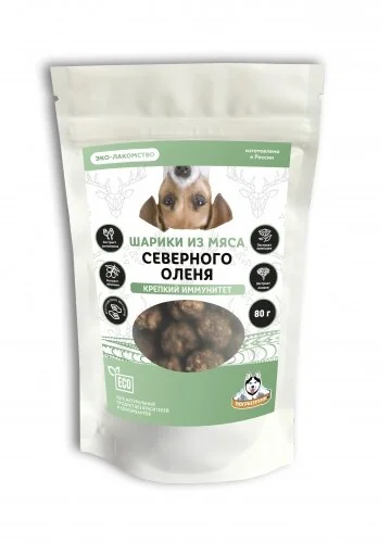 Лакомство Погрызухин Крепкий иммунитет шарики из мяса северного оленя для собак