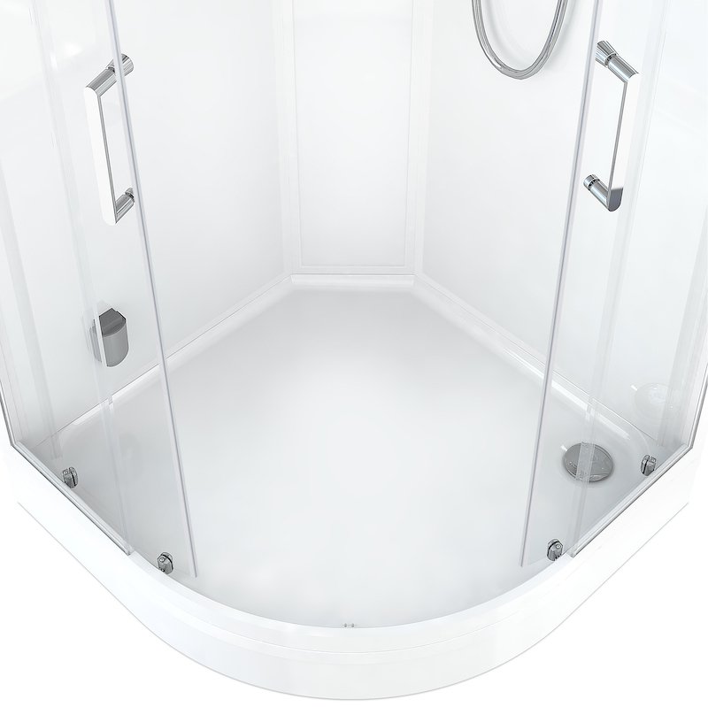 Покрытие поддона - 100% сантехнический акрил, оснащён съёмным экраном с системой скрытых крепежей для быстрого доступа к сливной системе