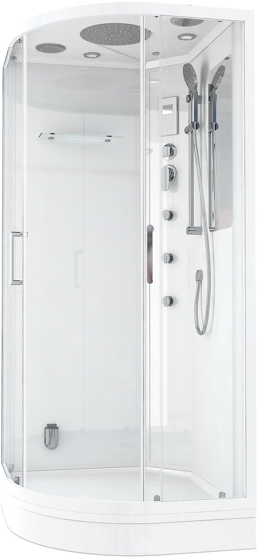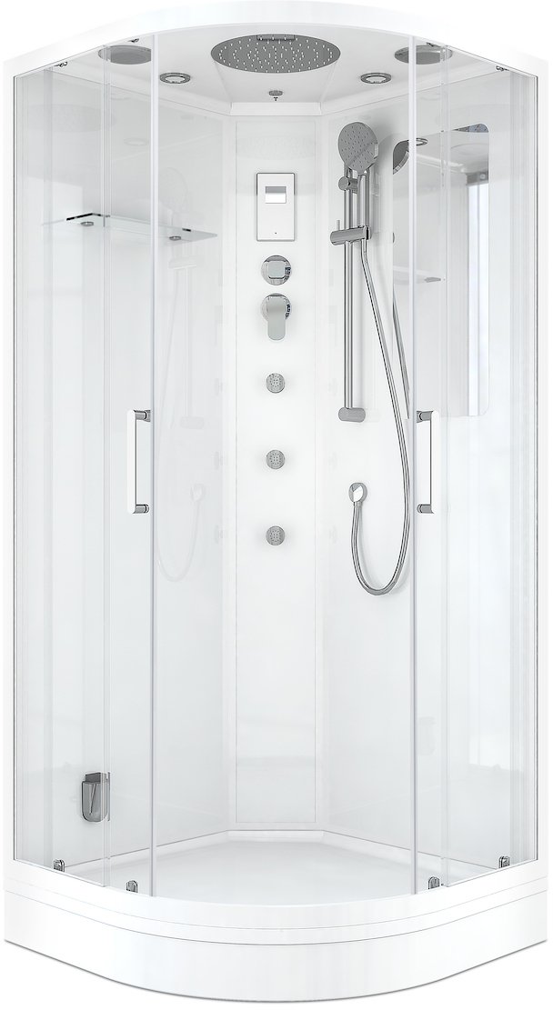Озонатор: Озонирование требуется для дезинфекции воздуха и поверхностей душевой кабины после принятия водных процедур. В процессе озонирования на 99.9% уничтожаются микробы, бактерии, вирусы и прочие микроорганизмы, которые очень любят селится во влажной среде, так как эта процедура в разы эффективнее обработки хлорными препаратами.