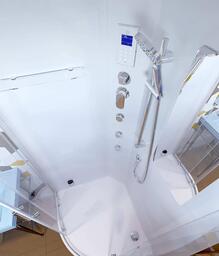 В душевой кабине установлен парогенератор, который способен в течении 10-15 минут прогреть воздух до 45-55 град.С и поднять влажность до 95%.