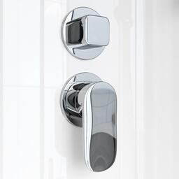 В душевых кабинах TEUER серии CRYSTAL установлен рычажной картриджевый смеситель для воды с переключателем режимов. Смеситель сделан из латуни с хромированным покрытием. Благодаря установленному в смесителе керамического картриджа, достигается плавность выбора температурного режима воды и переключения режимов подачи воды на верхний душ, ручную лейку, либо на форсунки вертикального гидромассажа.