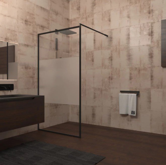 Душевой уголок Veconi Korato KR-71 90x195 прозрачное стекло с матовой полосой (frost line)/ профиль черный