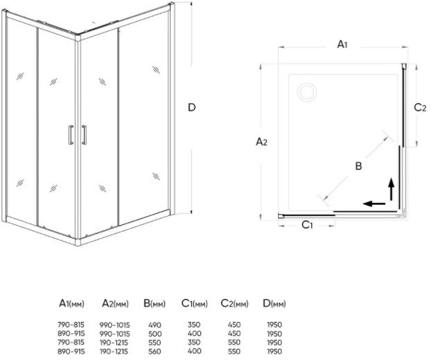 Тип кабины - Душевое прямоугольное ограждение для углового монтажа